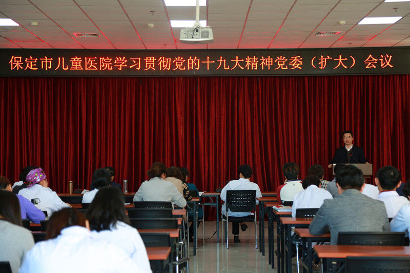 就贯彻落实十九大精神,院长田剑提出具体要求:一是以十九大报告和新修订的《党章》为学习重点,深刻领会十九大精神内涵,各支部要制定学习计划认真组织学习;二是贯彻落实十九大精神要与我们实际工作相结合。要认真学习国务院办公厅印发的《关于建立现代医院管理制度的指导意见》,不断提升我们的管理能力和管理水平。我院目前处在一个良好的快速发展时期,大家要统一思想,提高认识,团结一心,积极发挥主观能动性,为实现医院发展、员工满意、患者满意的工作目标共同努力。