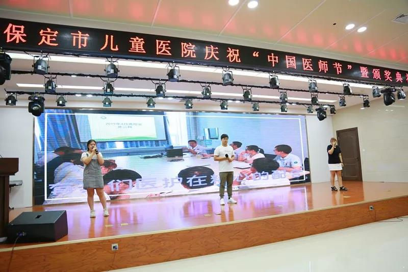 竞赛之后,大家翘首期盼的医师节庆祝晚会在已经燃起的热情氛围中拉开帷幕。晚会以“弘扬崇高精神,聚力健康中国”为主题,表心意,抒豪情,展风采,保定儿医人在这里共同庆祝这崇高又伟大的节日。