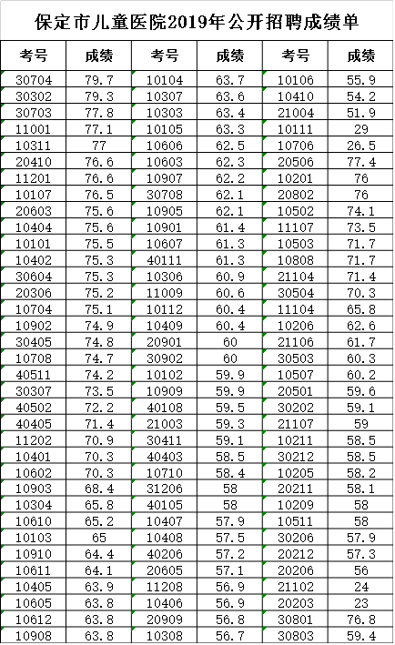 2019年公开招聘成绩单