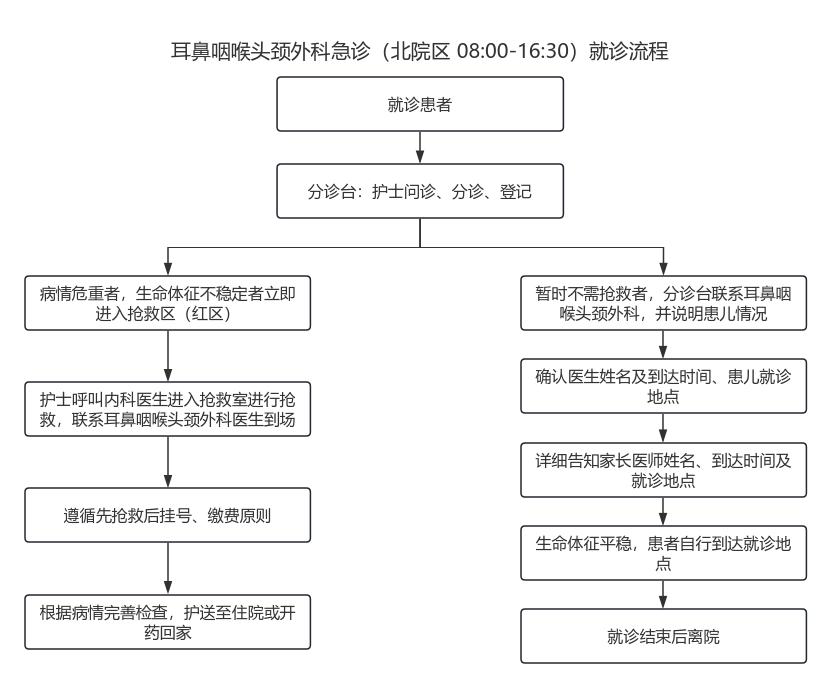 耳鼻咽喉头颈外科急诊(北院区08:00-16:30)就诊流程