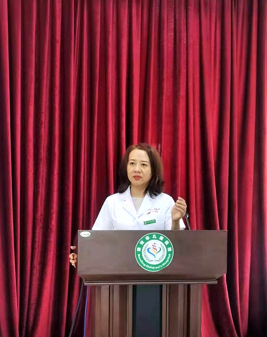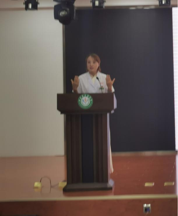 ▲副院长张洁给学生们培训医务人员职业行为规范