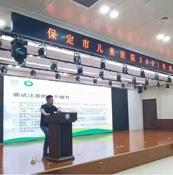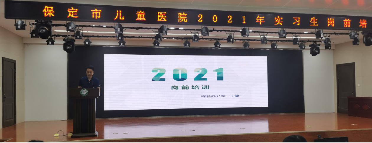 在院领导高度重视、各职能部门的积极配合下, 2021年7月19日—20日,在五楼会议室对2021年新报到的实习学生进行了岗前培训,来自临床医学、医学影像学、医学检验技术、健康医学、康复治疗学等专业实习生参加了此次培训,此次会议由科教科科长张瑜主持。