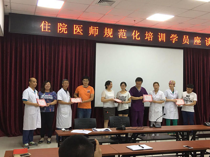 最后,顾芳副院长强调指出,医院一直高度重视规培带教质量和管理工作,针对规培学员学习生活中存在的问题将加强监督、逐步完善落实。鼓励学员在参加住院医师规范化培训过程中,在学习专业基础知识的同时,要注重医德人文素养培养,加强临床实践,克服困难,合理安排时间,学会应对压力,抓住机会多学多问,力争在培训时间内打下扎实的临床基础,圆满完成培训任务,努力成为一名新时期合格的住院医师。