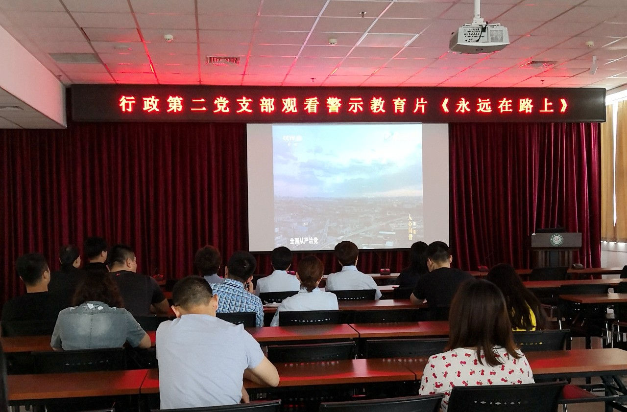 为认真落实党风廉政建设责任制,加大正风肃纪力度,警示教育党员严守政治纪律和政治规矩,筑牢理想信念根基,丰富党员活动日活动载体,5月15日上午,我院行政第二党支部组织支部党员干部在11楼会议室集中观看了由中央纪委宣传部、中央电视台联合制作的警示教育专题片《永远在路上》第一集。